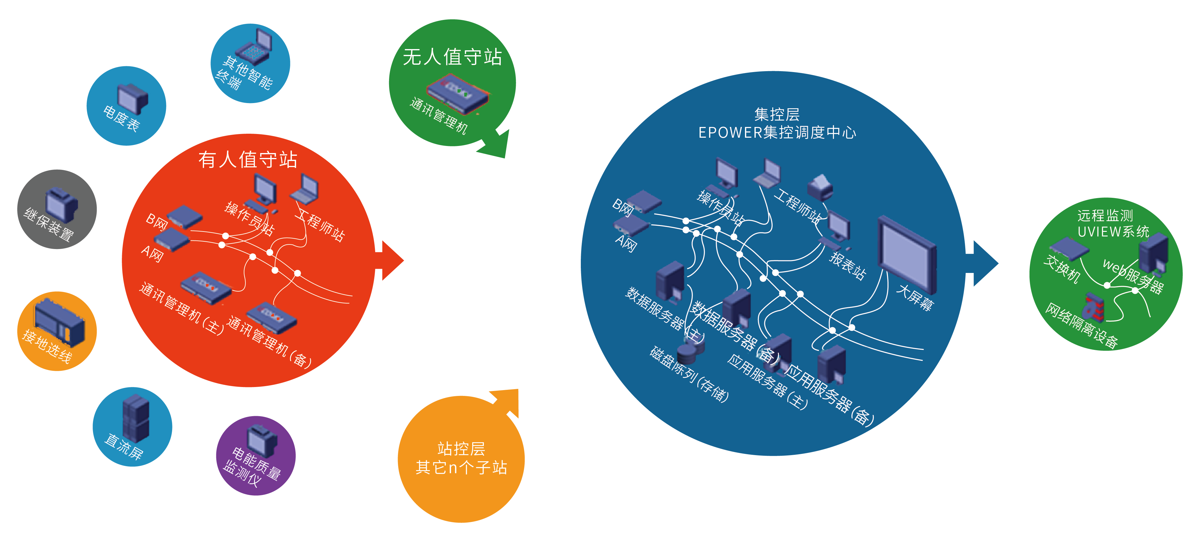 实施变电站集中监控系统,实现变电站无人值守远程集控,让多个电力站点可以在线维护,节约人工、物力等资源成本,打造新时代、高效、节能、智能的电力运维模式,让变电站巡检、维修、管理等工作更高效进行。电力调度(集控)自动化系统汇集各个子站信息的数据采集和监控,主要功能包括:数据采集、信息处理、统计计算、???、报警处理、安全管理、实时数据库管理、历史库管理、历史趋势、报表产生与打印、画面组态与显示、多媒体声音报警、事件顺序记录、高级应用软件PAS等。